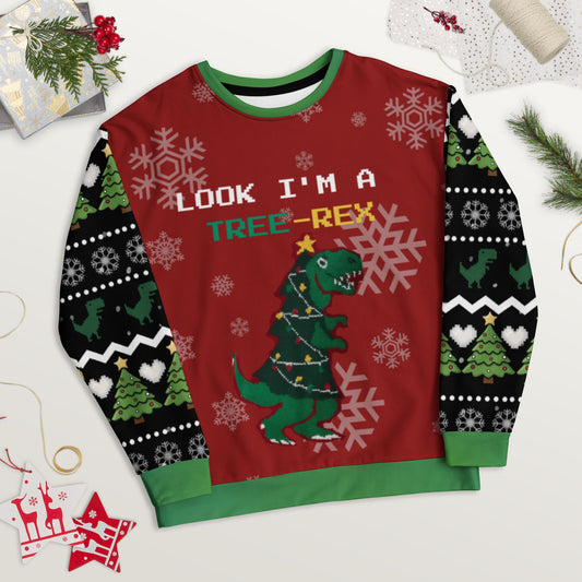 Funny “Tree-Rex” Ugly Christmas Sweater – T-Rex Dinosaur Holiday Jumper for Women, Festive Xmas Party Pullover